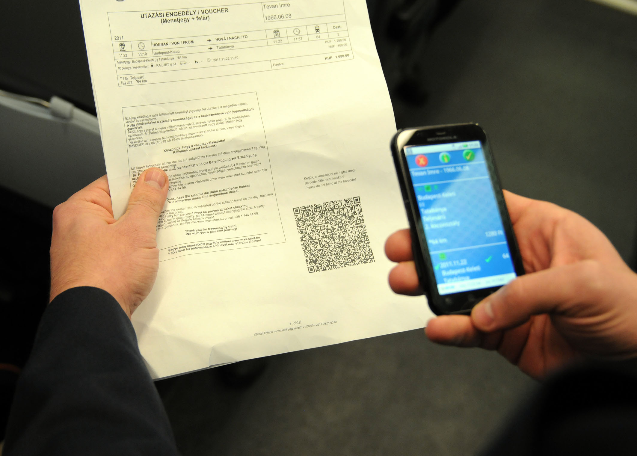 Otthoni nyomtatással a belföldi menetjegyeket, pót- és helyjegyeket az interneten az utazás előtt már akár 60 nappal is meg lehet vásárolni. A visszaélések elkerülése érdekében az otthon nyomtatott jegyek - ugyanúgy, mint Európa más vasútvállalatainál - egy adott napra és vonatra érvényesek, névre szólnak és nem átruházhatók. A menetjegyeket A/4-es méretű, fehér papírra kell kinyomtatni, az azonosítást kétdimenziós pontkód szolgálja, így ügyelni kell arra, hogy a papír a vonalkódnál ne sérüljön, ne gyűrődjön, hiszen annak leolvasásával ellenőrzi a jegyvizsgáló a vonat fedélzetén az adatokat. A személyes adatok ellenőrzéséhez az utas együttműködésére is szükség van a beazonosíthatóság érdekében. Az otthon nyomtatott jegyek nemcsak a MÁV, hanem a GYSEV vonalain is érvényesek. Bérletek, nemzetközi menetjegyek nem vásárolhatók meg ilyen módon, azonban élőállat- és a kerékpárjegy igen. Az online művelethez kapcsolódva számla minden esetben a webes felületen, a vásárlással egyidejűleg igényelhető, a pénztárban utólagosan számla nem állítható ki. Amennyiben az utas nem használja fel az otthon nyomtatott menetjegyét, akkor csak az online vásárlási felületen kezdeményezheti annak visszatérítését legkésőbb egy órával az első vonat indulását megelőzően. További információk a www.mav-start.hu oldalon találhatók.