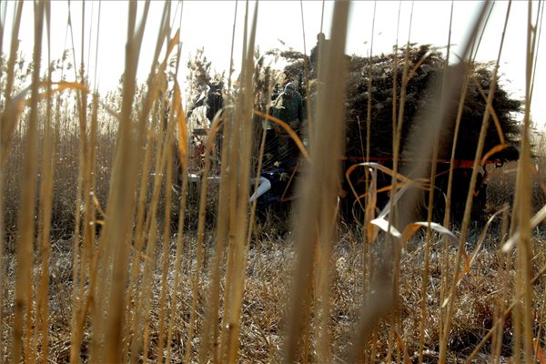 A szokatlanul enyhe januárban még tartani lehetett attól, hogy a leszerződött mennyiségnek csak egy részét tudja learatni az a három vállalkozás, amely pályázati úton 80 hektárnyi terület betakarításához nyert lehetőséget. A szárazföldről is elvégezhető munka-szakasszal eddig a kijelölt területeknek mintegy negyedét tudták learatni.