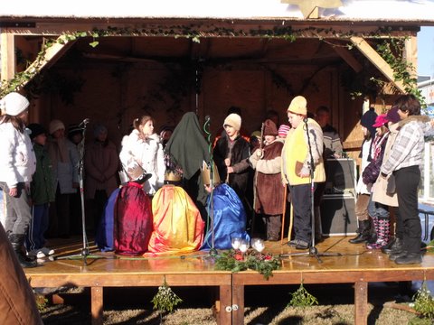 A megnyitó ünnepi beszédei után az Ady Endre gimnázium hetedik H osztályos tanulói adtak karácsonyi műsort. Az üzletház előtt felállított Istálló színházban a vásár ideje alatt változatos programokkal találkozhattak, találkozhatnak az érdeklődők, a nagyatádi iskolák különböző csoportjai, óvodások, és egyházi szervezetek tették színesebbé a várakozás időszakát. A műsorok minden délután 16:30-kor kezdődtek és kezdődnek. Csütörtökön a Katolikus Egyház Betlehemi Játékait láthatják és búcsúzóul a négy gyertya üzenetét a szervezőktől.