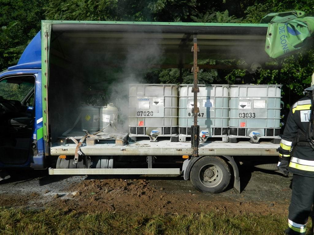 A 6,5 tonnás Iveco teherautó vezetője észlelte a plató füstölését, ezért leállt a két település közötti parkolóba és kézi tűzoltó készülékkel megkezdte az oltást, amit a kiérkező tűzoltók fejeztek be. A tűz eloltását követően derült ki, hogy a sérült hordóból szivárgó vegyi anyag reakcióba lépett a raklappal és a gépjármű platójával, ezért izzott, füstölt.