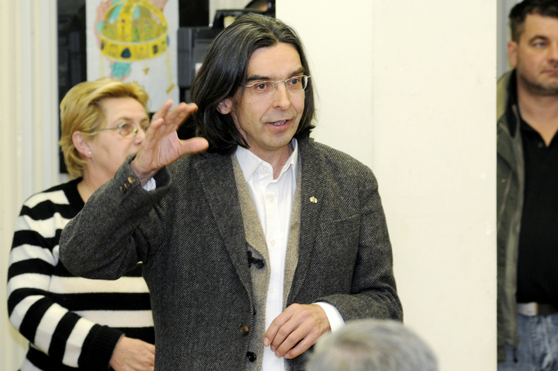 A szent korona ereje, szentsége és misztériuma címmel a Megyeházán az esti órákban tartott előadás elé Jakó Gergely, a Somogy Megyei Közgyűlés alelnöke mondott köszöntőt, majd Szántai Lajos délután elhangzott gondolatait folytatta: a magyarság életében ezer esztendőn keresztül a magyar Szent Korona kiemelkedő helyet foglalt el. A Szent Koronával egyidősnek, vagy testvérének a ma ismert koronázási ékszerek közül a jogar tekinthető. Majdnem fél évszázad telt el úgy, hogy abból bizonyítható módon, legalább negyven esztendő éppen a Szent Korona ellenében hagyta mondjuk a magyar történelmen a bélyegét. És azért negyven esztendő alatt, vagy fél évszázad alatt kerekítve, hát azért néhány nemzedék szárba szökken. Tehát ez azt jelenti, hogy nekünk most újra kellene tanulnunk, miért kötődtek annyira a magyar Szent Koronához. És itt most nem értelmi szintű tanulásról van szó, hanem nemes egyszerűséggel rá kellene döbbenünk arra, hogy a magyar történelemnek van egy olyan szent eszközlője, mint a magyar Szent Korona, aminek akárhonnan vizsgáljuk a létét, akárhogy vitatkozhatunk, hogy mi eredeti és mi nem a koronán, zománcképekre, képcserékre gondolunk, vagy bármi, hogy zárt korona, nyitott korona, huszad rangú kérdés.