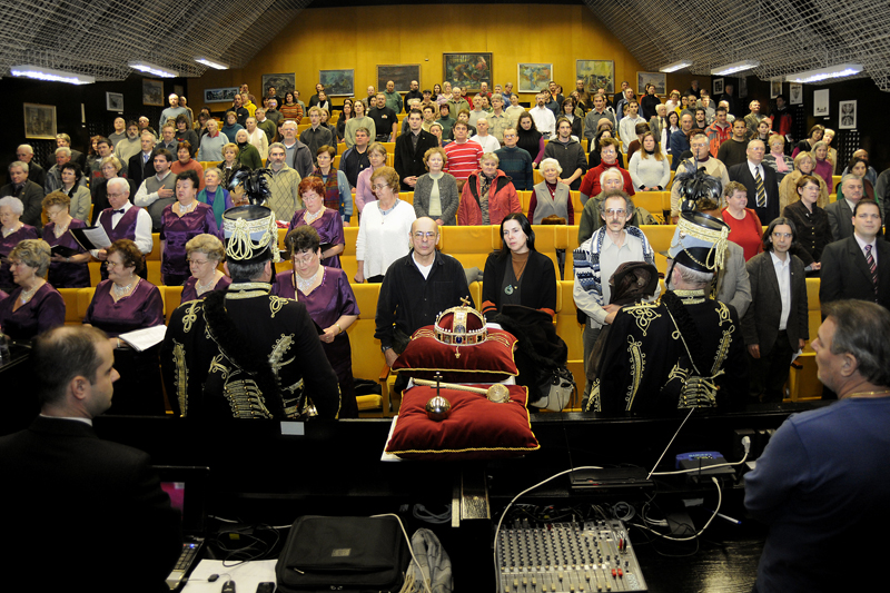 Egyetlen Szent Koronát tart számon a világtörténelem, a kereszténység nagy világkorszakában és egy olyan királyság van, amit apostolnak, apostolinak neveznek. Ráadásul nem Európa rejtett zugában, valahol a periférián, hanem Európa közepében, ez a magyar királyság. Talán ebben a mai világban is sikerrel meríthetünk már elfelejtett értékeket, ha visszanézünk egy kicsit gyökereinkhez, hiszen nem csupán egy tárgy, hanem egy kultusz, a nemzet mítoszának középpontja a Szent Korona - mondta Szántai Lajos. S, hogy ne csak a szavak szóljanak a koronáról, arról is gondoskodtak a szervezők. Rónai Attila kaposvári ötvösmester koronamásolatában gyönyörködhetett a szép számú érdeklődő.